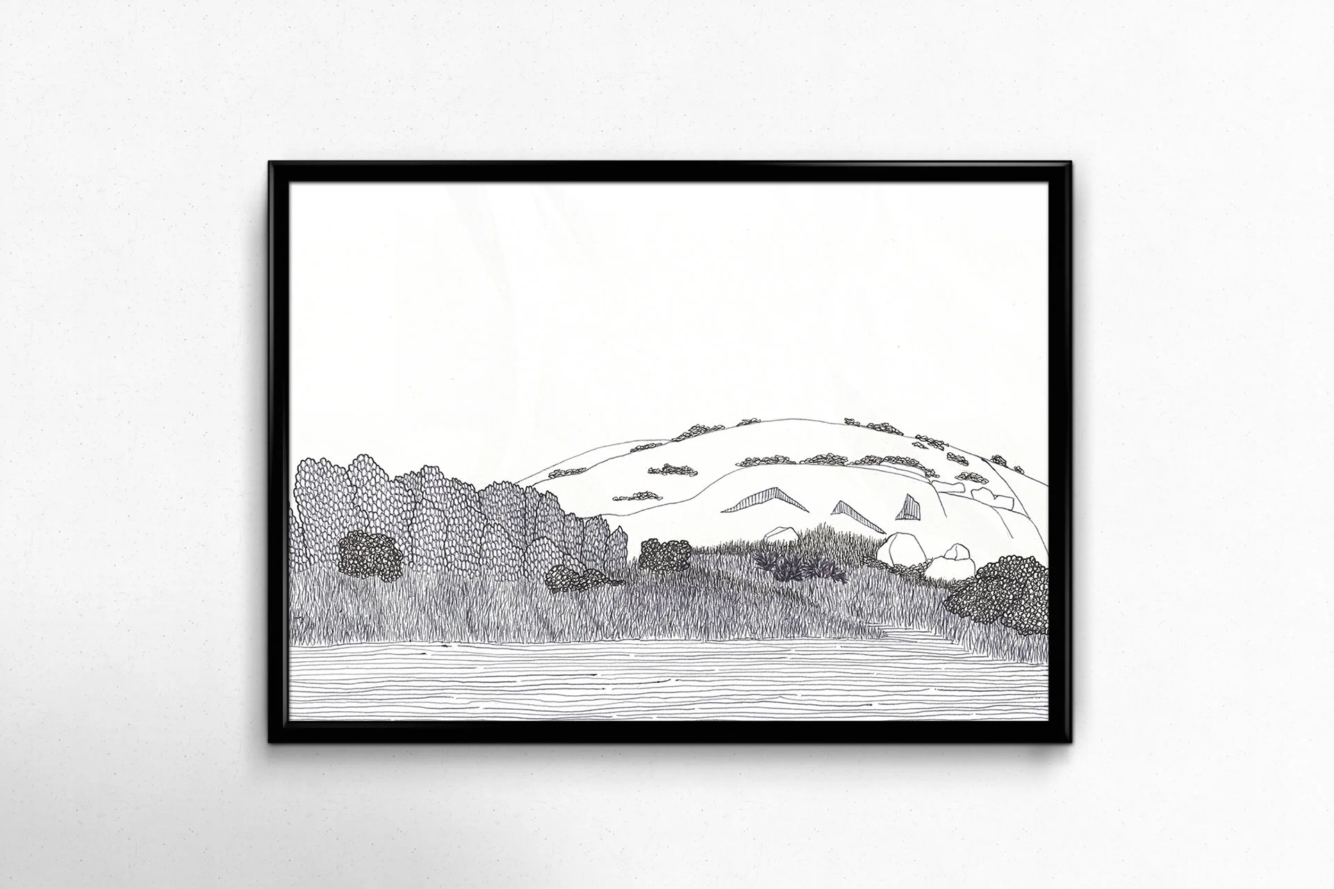 This listing is for my original drawing Hill Country 3. This piece is drawn by hand on drawing paper using two different black pens. Prints of the work are also available.